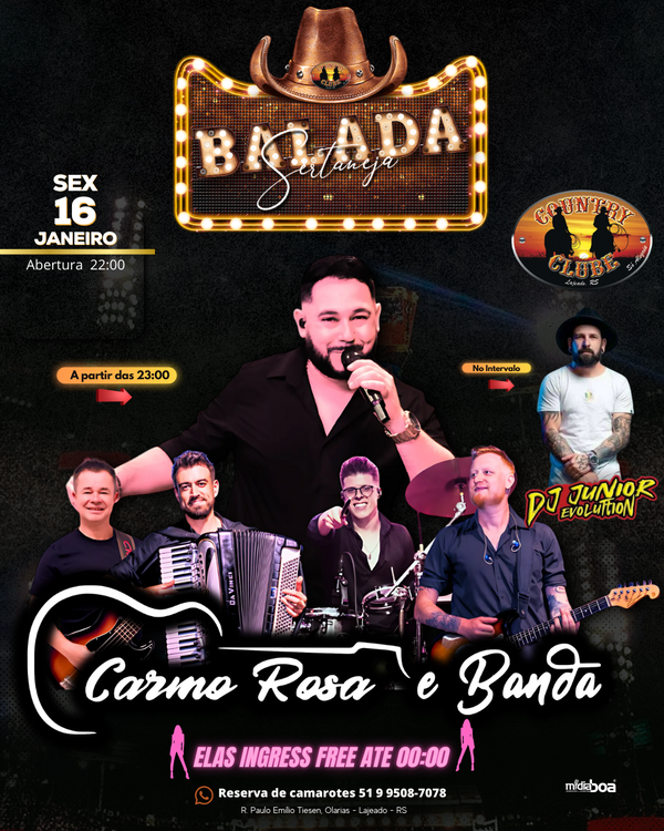 Sexta 16/01 - Carmo Rosa e Banda + Dj Junior Evoluttion